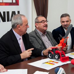 „Dacă tot am fost comunist, o să vă adresez un îndemn pe care să nu-l uitaţi niciodată: muncă, muncă şi iar muncă şi să nu uitaţi cum şi de ce aţi câştigat…”, a spus secretarul organizaţiei, după care a scos dintr-un pachet un tractoraş de culoare roşie şi o drujbă de culoare portocalie.