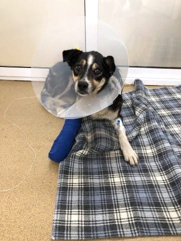 Polițiștii îl caută pe cel sau pe cea care a accidentat o cățelușă (foto), în Orăștie, animalul fiind dus la o Asociație de protecția animalelor.