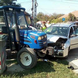 Un bărbat de 40 de ani conducea un taxi pe strada 22 Decembrie, pe banda întâi. La intersecţia cu strada Pietroasa, şoferul a întors brusc spre celălalt sens de circulaţie, fără să se asigure şi a lovit un autoturism care circula regulamentar. Maşina care se deplasa corect pe sensul Deva-Simeria era condusă de un bărbat de 46 de ani, din Deva. În urma coliziunii, cele două maşini au fost proiectate într-un tractor cu remorcă, staţionat pe banda întâi, sensul de mers Simeria-Deva. Cei doi şoferi şi o pasageră de 44 de ani, din Deva, care se afla în taximetru au fost răniţi, una dintre victime fiind încarcerată. La locul accidentului au ajuns imediat trei echipaje de pompieri specializate în descarcerare şi prim ajutor calificat, precum şi o ambulanţă cu medic. Victimele au fost stabilizate şi protejate cu gulere cervicale. Cele trei persoane cu politraumatisme au fost transportate la spitalul din Deva, fiind conştiente şi cooperante. Nici una dintre cele trei persoane nu a rămas internată.