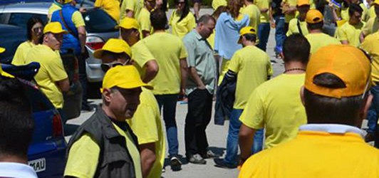 "...tricouri si sepcute galbene" ! Bai, suntem in anotimpul numit "toamna" si nu aveau cum sa fie imbracati in tricouri si sepci! Intamplator, trecand prin zona, i-am vazut si eu si nu erau imbracati asa! Voi va dati seama ce penibili sunteti, "Mesageri hunedoreni" de doi lei! Vai de voi!!!