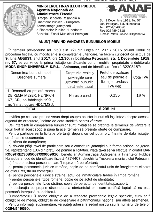 Anunţ Finanţe 24.07.2017