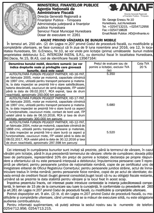 Anunţ Finanţe 24.10.2016