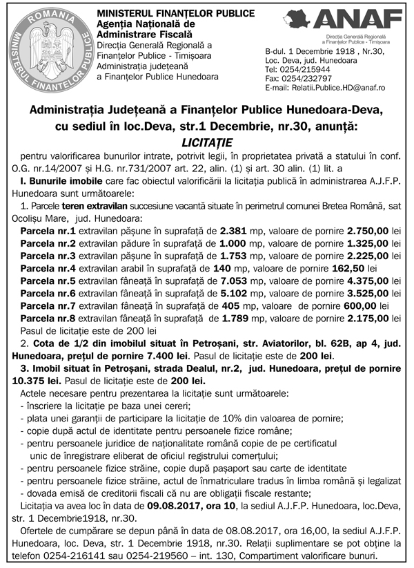 Anunţ Finanţe 28.07.2017