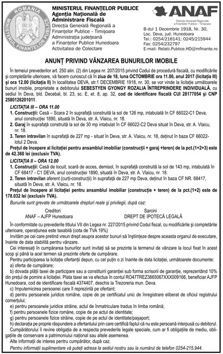 Anunţ finanţe, 3.10.2017