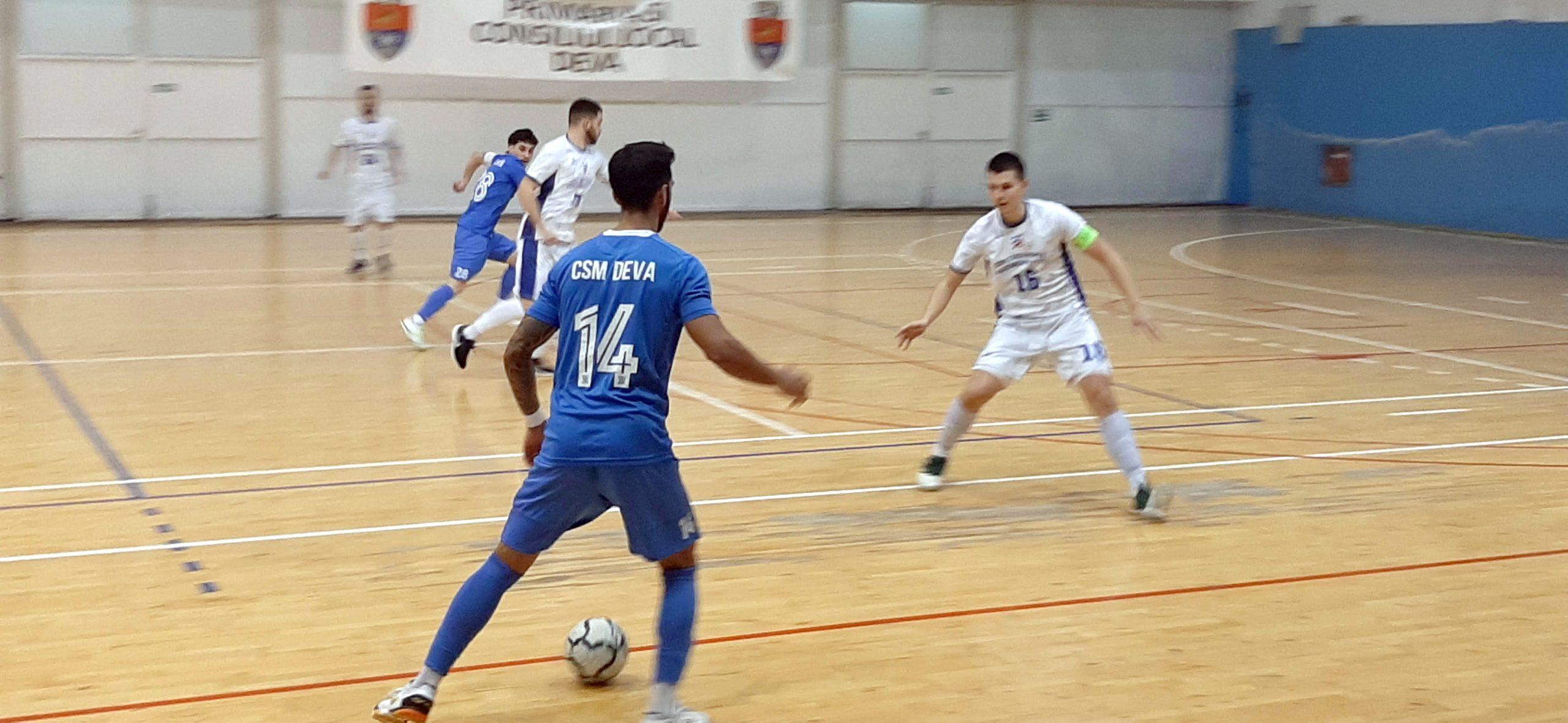 Partida de fotbal în sală din cadrul etapei a XVI-a din Liga 1, de la Deva, a opus formației locale o echipă care urcă încet și sigur în ierarhia clasamentului și, mai mult, emite pretenții la primele locuri.