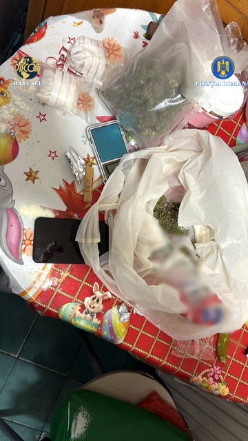În urma perchezițiilor efectuate, au fost descoperite și ridicate aproximativ 60 de grame de canabis (drog de risc), 100 de grame de substanță cristalină 4-CMC (drog de mare risc), 100 de grame amestec 2-CMC (drog de mare risc) și 4-BMC (substanță psihoactivă nouă), comprimate cu substanța activă alprazolam, grindere, cântare de precizie, sume de bani în lei și euro, precum și alte mijloace de probă.
