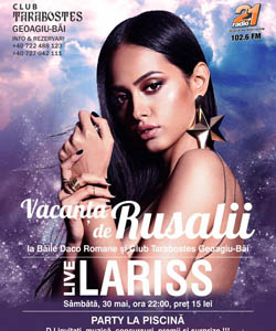 Minivacanţa de Rusalii le oferă hunedorenilor posibilitatea de a-şi petrece un weekend prelungit. Cei care vor alege să ajungă în staţiunea Geoagiu-Băi au deja asigurat progamul de distracţie în cadrul Complexului Balnear Băile Daco-Romane. Aici vor avea loc concerte live, concursuri şi petreceri la piscină, iar invitata specială a Clubului Trabostes este una dintre cele mai în vogă artiste autohtone, cântăreaţa Lariss.