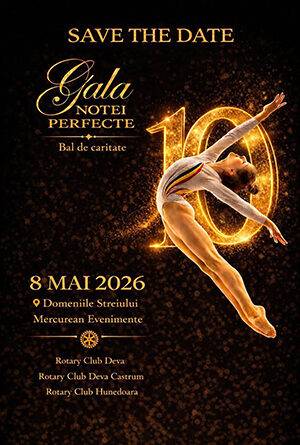 „Pregătim o seară de nota 10. Pentru a celebra acest simbol al perfecțiunii și pentru a susține tinerele talente ale gimnasticii, Rotary Club Deva, Rotary Club Deva Castrum și Rotary Club Hunedoara pregătesc o seară dedicată eleganței, generozității și performanței.