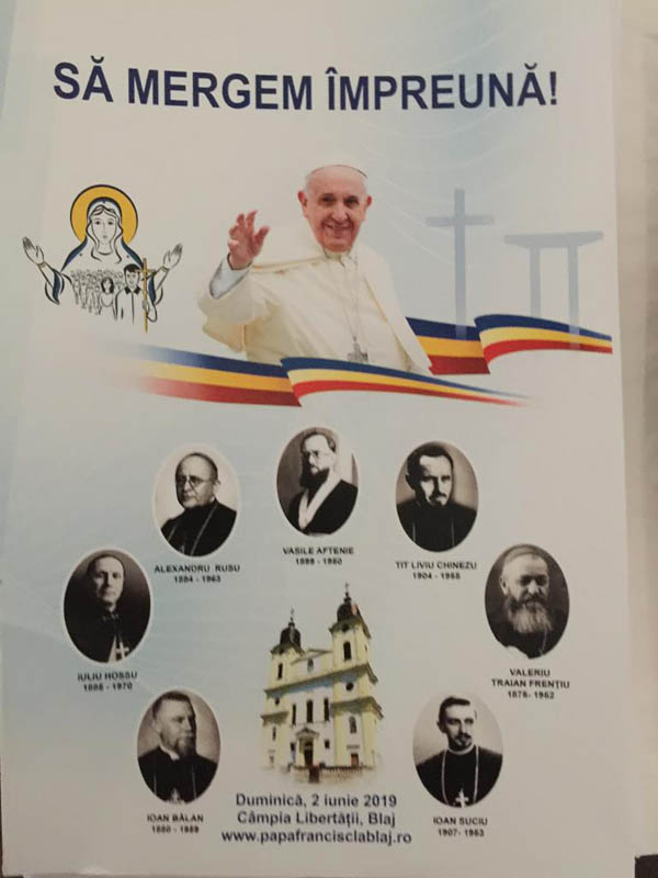 Punctul culminant al vizitei Sanctităţii Sale Sfântul Părinte Papa Francisc l-a reprezentat Sfânta şi dumnezeiasca Liturghie a Sfântului Ioan Gură-de-Aur în ritul bizantin român cu beatificarea celor şapte episcopi greco-catolici români martiri la Blaj pe Câmpia Libertăţii (2 iunie 2019) în Duminica orbului din naştere, a VI-a de la Paşti.