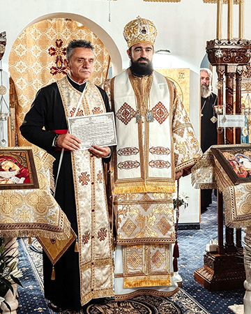 Pentru că a fost hirotesit de către Preasfințitul Părinte Nestor întru iconom.