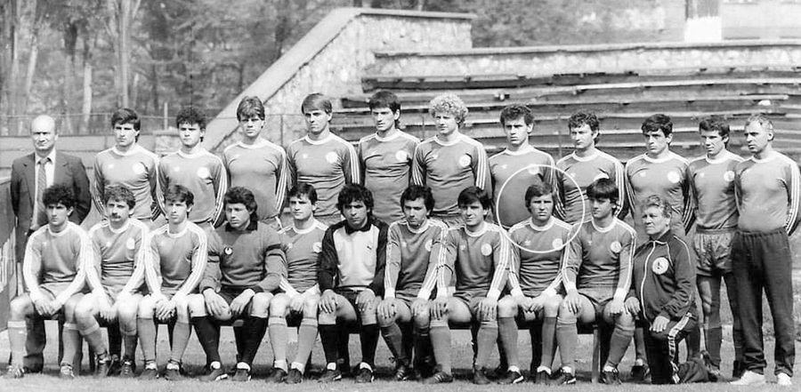 „Noaptea, când îmi fac rondul, mai pup pozele astea”, spune bărbatul de 65 de ani, îmbrăcat în uniforma largă de agent de pază. În spatele său, pe pereți, sunt fotografii în care apar fotbaliști uriași, oameni cu turnee finale de Mondiale și Europene în tricoul României. Lângă Rednic, Andone și Klein stă un bărbat cu o figură seriosă care acum 40 de ani reușea să se impună într-o echipă a Corvinului construită de revoluționarul Mircea Lucescu.