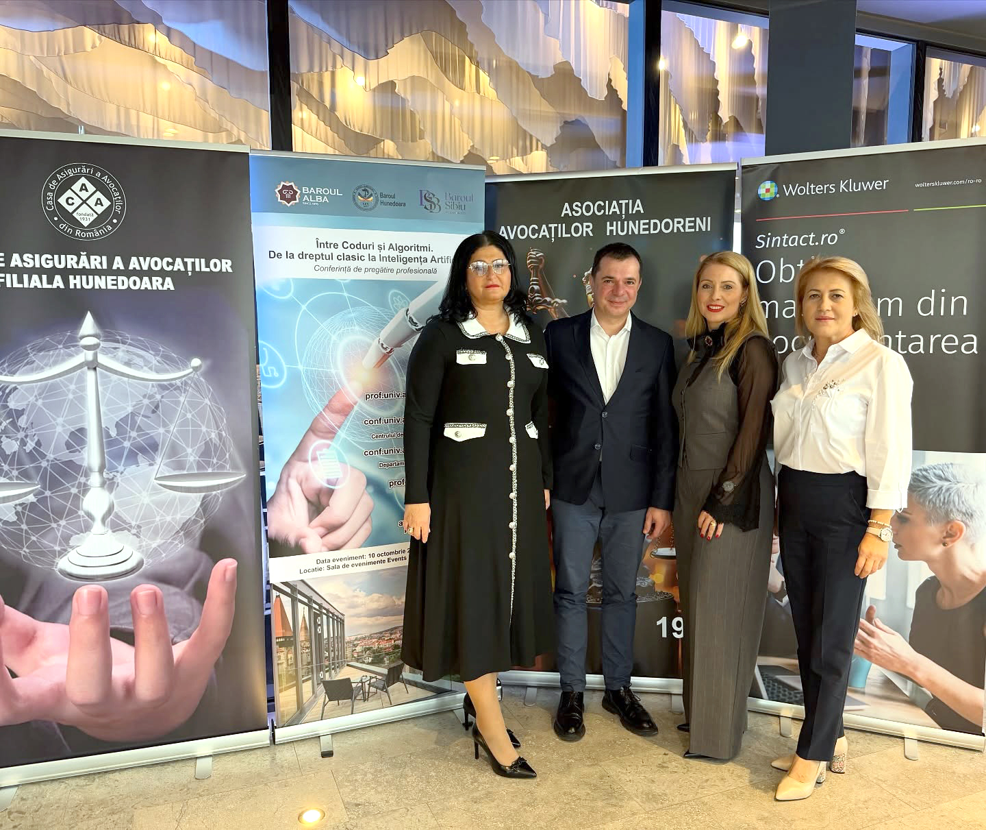 O conferință inedită, „Între coduri și algoritmi. De la dreptul clasic la inteligența artificială”, a fost organizată de Baroul Hunedoara, în colaborare cu Baroul Alba, Baroul Sibiu, Uniunea Națională a Barourilor din România și Institutul Național pentru Pregătirea și Perfecționarea Avocaților.
