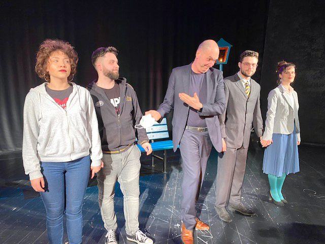 La final, cei prezenţi la această lansare de carte au avut parte de o surpriză, fiind invitaţi să vizioneze (n.r.-de pe scenă) piesa “Jerry şi câinele”, o adaptare după piesa scrisă de Edward Albee în urmă cu 62 de ani, dar care se pretează extrem de bine la momentele actuale.