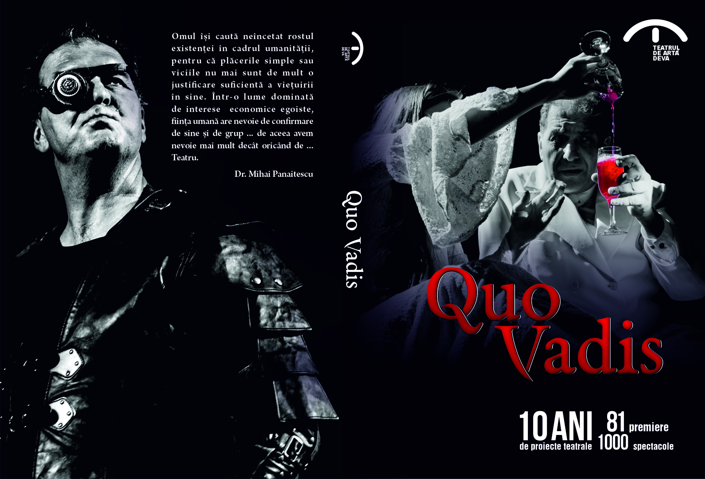 De ce a ales managerul piesa “Jerry şi câinele” pentru ziua lansării cărţii-document? “Este o adaptare după un dramaturg important. Este o piesă care s-a jucat în mii de feluri. Maniera regizată de mine este una specială. De ce am ales această piesă pentru ziua lansării cărţii Quo Vadis?. Pentru că ea este un manifest pentru viaţă. Ea vorbeşte despre singurătate, despre faptul că nu mai comunicăm între noi. Dar, putem fi fericiţi şi cu puţin. Importanţa tuturor lucrurilor o dăm noi. Trebuie să ne bucurăm de soare, de tot. Importantă este viaţa”, a adăugat managerul teatrului devean.