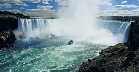 Aceasta este probabil cea mai cunoscută şi cea mai populară cascadă din lume. Are 51 m înălţime şi 1.203 m lăţime. Este formată din două secţiuni despărţite printr-o insulă, Horseshoe Falls în partea canadiană şi American Falls în partea americană. 90 la sută din debitul de apă se află în partea Canadei. Se spune că s-a format acum 10.000 de ani, iar în Europa este cunoscută din 1677. Numărul de turişti ce o vizitau an de an până în 2009 era de aproximativ 28 de milioane şi de aceea a devenit cea mai vizitată cascadă din lume.