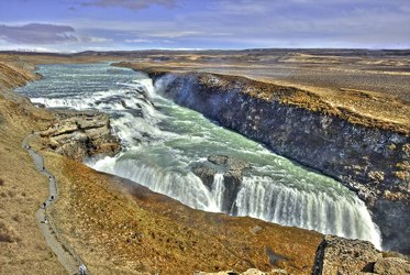 Cascada Gullfoss este situată pe coasta de sud-vest a Islandei şi este una dintre cele mai încântătoare din ţară. Frumoasă, cu o lăţime considerabilă şi o înălţime de 32 m, având două niveluri situate la 90 grade, oferă o privelişte încântătoare ce impresionează orice vizitator.