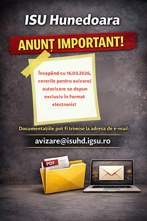 Transmiterea documentelor se realizează la adresa de e-mail: avizare@isuhd.igsu.ro. (E.P.)