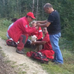 „Când am ajuns la stână, bărbatul era conştient, dar nu se putea ridica de jos. I-am acordat primul ajutor şi l-am aşezat pe o targă specială într-o poziţie laterală, în care nu avea dureri. După mai bine de o oră, în care am traversat o zonă dificilă cu un drum de TAF-uri, am reuşit să-l aducem la ambulanţa care ne aştepta la Câmpuşel“, a declarat Bogdan Sole Danciu, şeful Formaţiei Salvamont Uricani. Ciobanul a fost transportat la spitalul din Petroşani, din primele simptome apreciindu-se că acesta a suferit o insuficienţă cardiacă.