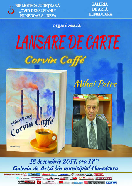 Biblioteca Judeţeană „Ovid Densusianu” Hunedoara-Deva organizează în ziua de 18 decembrie 2017, ora 17, la Galeria de Artă din municipiul Hunedoara, un eveniment cultural deosebit: lansarea volumului intitulat „Corvin Caffé – pseudoroman cu un oltean de… Hunedoara”, al cărui autor este scriitorul şi cunoscutul dascăl de limba şi literatura română Mihai Petre.