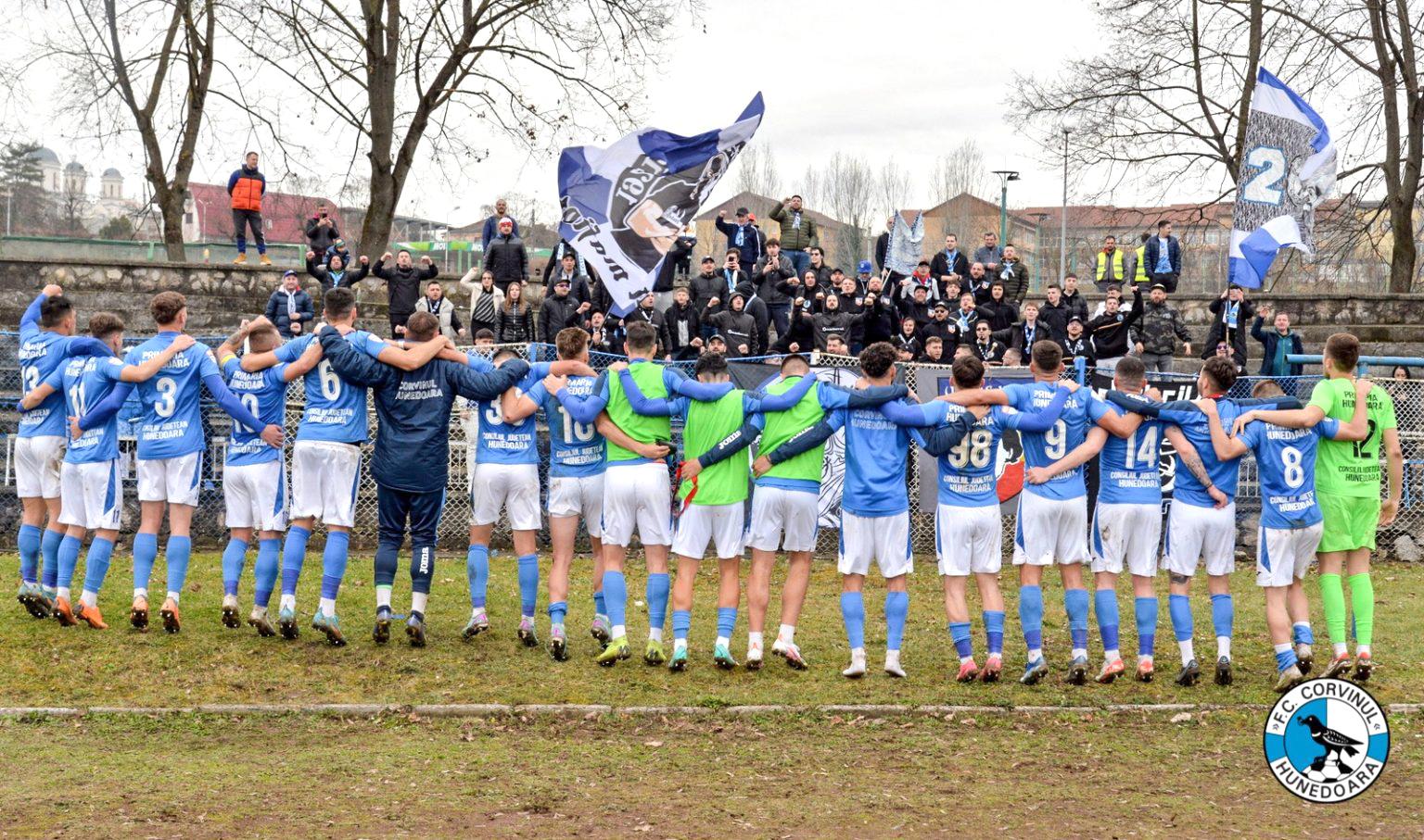 Echipa noastră a bifat al 10-lea succes stagional, după 3-0 (1-0) cu CSM Slatina, la capătul unui joc în care toţi cei trei marcatori au înscris, în premieră, în liga secundă pentru „corbii albaştri”. Corviniştii sunt cu un pas în play-off, în chiar sezonul revenirii în cel de-al doilea eşalon.