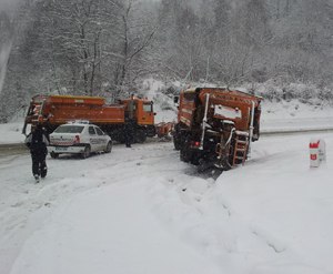 « La kilometrul 139, pe raza municipiului Petroşani, am avut un mic incident. Un utilaj de deszăpezire, fiind pe urcare, gol, în timp ce dădea zăpada, roţile din spate i-au alunecat şi a intrat în şanţ. Am reuşit în final să scoatem utilajul din şanţ. Alte probleme de când s-a pus pe ninsoare şi până acum nu am avut şi sper să nici nu avem. Traficul se desfăşoară în condiţii normale de iarnă », a declarat, comsiarul Sorin Ciobanu, ofiţer specialist în cadrul Biroului Rutier al Poliţiei Petroşani. În Valea Jiului ninge abundent încă din noaptea de joi spre vineri, însă drumarii au reuşit să ţină drumurile practicabile. (M. Gânju)