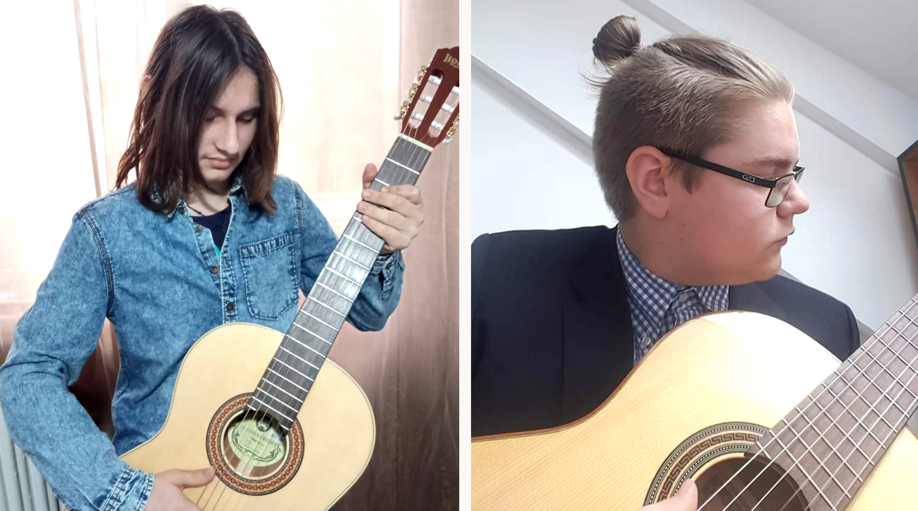 Liceul de Arte “Sigismund Toduţă” din Deva a fost reprezentat la secţiunea muzică instrumentală, categoria B-profesionişti, de către doi elevi de la clasa de chitară a profesorului Norbert Lorant Bravyak. Este vorba de Erwin Landt (foto stânga), din clasa a VII-a muzică, anul 2 de studiu, care a obţinut Premiul III şi de Norbert Nicolae Kasler (foto dreapta), clasa a IX-a muzică, care a obţinut o menţiune. (M. Crivăţ)
