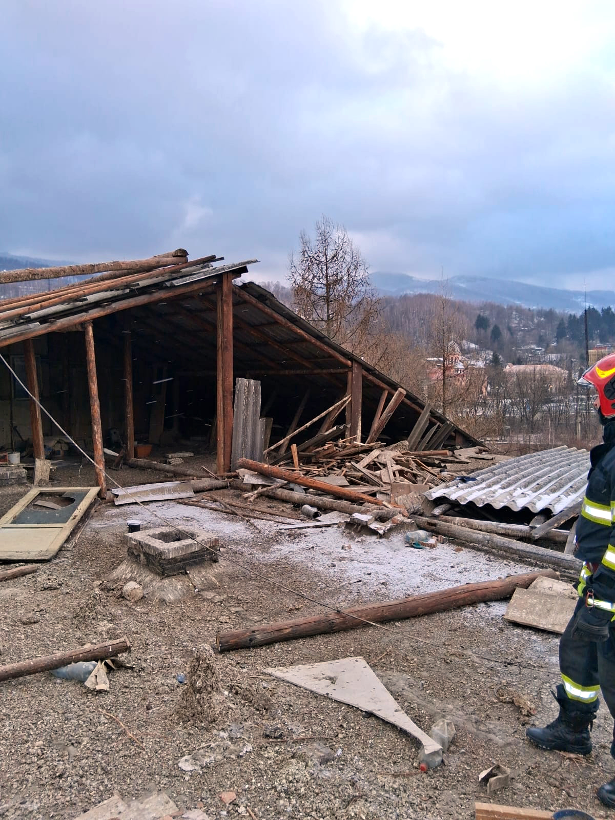 Pompierii au intervenit pentru îndepărtarea învelitorii de azbociment a acoperișului și au fixat elementele de construcție, fiind eliminat pericolul ca acestea să cadă pe trotuar.