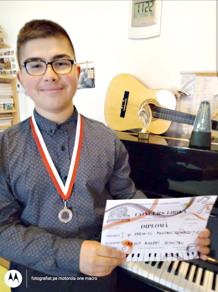 În concurs s-au înscris 88 de concurenţi cu vârste cuprinse între 5 ani şi 42 de ani, care au participat la cele două secţiuni (amatori şi profesionişti). Reprezentantul Liceului de Arte “Sigismund Toduţă”-Deva, elevul Arhip Andrei (foto) din clasa a VII-a pian (anul 1 de studiu), clasa prof. Popa-Morait Cristina, a obţinut din partea juriului concursului Premiul I la interpretare pianistică-secţiunea profesionişti şi Premiul pentru compoziţie. (Prof. Mariana Onţanu-Crăciun)