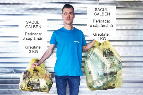 După două săptămâni de colectare el a reuşit să adune trei kilograme de reciclabile, iar sacul a fost umplut doar pe jumătate. „Ne confruntăm cu această problemă în majoritatea zonelor în care dezvoltăm programe de colectare, separată a deşeurilor. Containerele se umplu cu cel mult un sfert din cantitate şi ajungem să transportăm practic… aer. Acesta este motivul pentru care facem apel la clienţii noştri din toată ţara, să preseze reciclabilele voluminoase înainte de a le introduce în containerele de depozitare sau în sacii galbeni Brai Cata. De asemenea, este foarte important ca ambalajele tetra pak să fie spălate, înainte de a fi pliate, pentru a nu contamina celelalte reciclabile”, a subliniat Bogdan Constantinescu, directorul general al companiei.