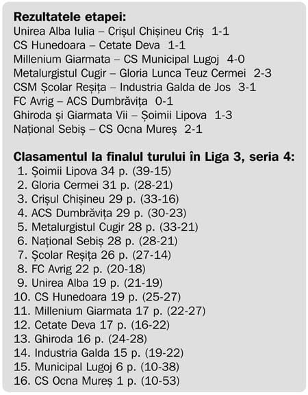 Fotbal, Liga a III-a: Deva, egala… Hunedoarei