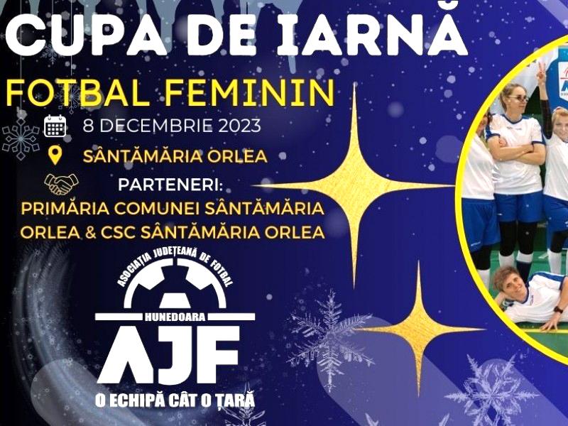 Asociația Județeană de Fotbal (AJF) Hunedoara propune o nouă competiție adresată fotbalului feminin, „Cupa de iarnă”, care se va desfășura astăzi, 8 decembrie 2023, în sala Polivalentă de la Sântămăria-Orlea.