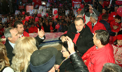 Candidatul PSD la preşedinţia ţării, Mircea Geoană, a fost întâmpinat ieri, în vizita de la Petroşani, de circa 1.000 de susţinători, care au umplut până la refuz sala de spectacole a Casei de Cultură a Sindicatelor din localitate. Candidatul social democrat le-a promis minerilor că-i va ajuta să-şi păstreze locurile de muncă, deoarece „România are nevoie de energie, de cărbune, pentru că altfel, este vulnerabilă”, iar pensionarilor din minerit le-a dat asigurări că odată ajuns preşedinte, le va rezolva şi problemele legate de grupele de muncă. „În anul 2007, am fost în mină, la EM Livezeni şi am văzut munca grea a minerului. Am fost de mai multe ori în Valea Jiului şi m-am întâlnit cu voi şi cunosc problemele acestei zone. Avem mare nevoie de o strategie coerentă pentru dezvoltarea Văii Jiului”, le-a spus liderul PSD susţinătorilor săi.
