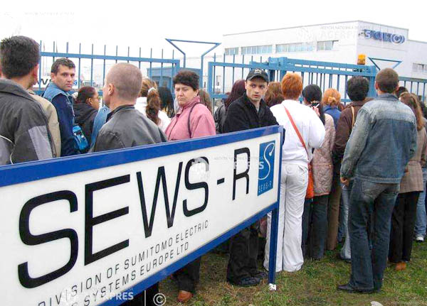 Salariaţii de la această fabrică susţin că au lefuri foarte mici, motiv pentru care au declanşat protestul spontan, un muncitor câştigând lunar între 1.400 de lei şi 2.000 de lei. Fabrica SEWS din Deva are aproape 3.000 de salariaţi, fiind cel mai mare angajator din municipiu. (A.Năstase)