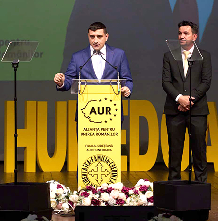 ,,Aici, în mare parte din județul Hunedoara, parte din localitățile județului Hunedoara, AUR a fost pe primul loc. Asta arată că oamenii și-au pus încrederea în noi. Și îmi aduc aminte când eram cu Tiberiu în primul an de existență al Alianței pentru Unirea Românilor, în această sală, aici, și abia dacă ne strângeam 30-40 de oameni. Acum este o sală arhiplină. Ne luptăm până la capăt, conștienți de faptul că, prin multă jertfă și trudă, ce am creat noi, este unic”, a punctat George Simion, preşedintele Partidului Alianţa pentru Unirea Românilor, în salutul său.