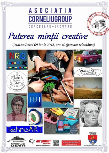 Zeci de inventatori îşi vor reuni pasiunile şi talentul la evenimentul intitulat generic „Puterea minţii creative“, organizat de Asociaţia Corneliu Group Cercetare-inovare, Primăria municipiului Deva şi Serviciul Public Administrare Cetate.