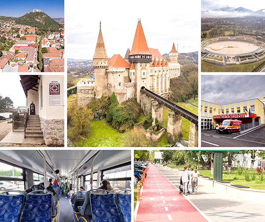 • Autobuze electrice în Deva și Hunedoara, piste pentru biciclete, sistem de bike-sharing;
