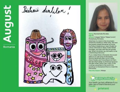 Iulia Manole, din Hunedoara, este câștigătoarea din România a competiției internaționale de desene „My Bright Smile”