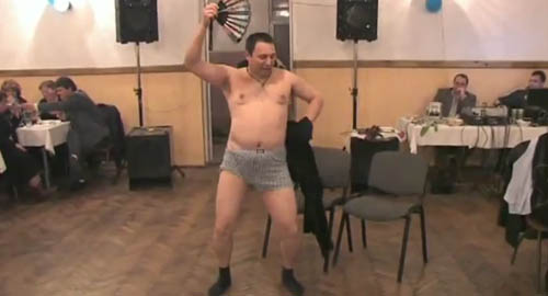 Totul începe cu o lumină semi-obscură, pe cunoscuta melodie a lui Joe Cocker, şi un bărbat, lider de sindicat, dispus să înveselească femeile prezente la un chef de 8 Martie, printr-un număr de striptease. Cu mişcări lascive, fiind în centrul atenţiei, cocoţat pe două scaune, Aurelian Enache îşi dă jos, rând pe rând, cravata, sacoul, cămaşa şi pantalonii, rămânând doar în chiloţi şi cu pantofii în picioare. Sala este în delir… Enache se înarmează cu un evantai, probabil pentru a face vânt colegelor înfierbântate de show-ul incendiar. Mândru nevoie-mare de abilităţile de dansator, liderul de sindicat îşi termină reprezentaţia printr-un zâmbet larg, aidoma unei vedete de cinema.