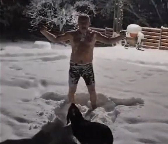 Lucian Heiuş, vicepreşedinte al Curţii de Conturi, a făcut baie în zăpadă, după ce a rămas făra curent mai multe zile