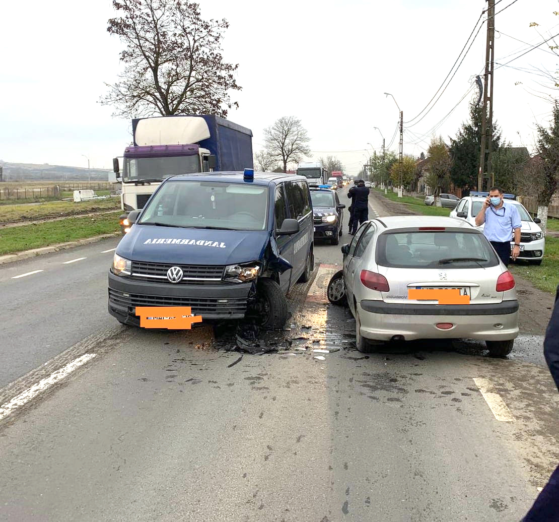 Maşină a jandarmilor, lovită de un autoturism condus de un şofer beat