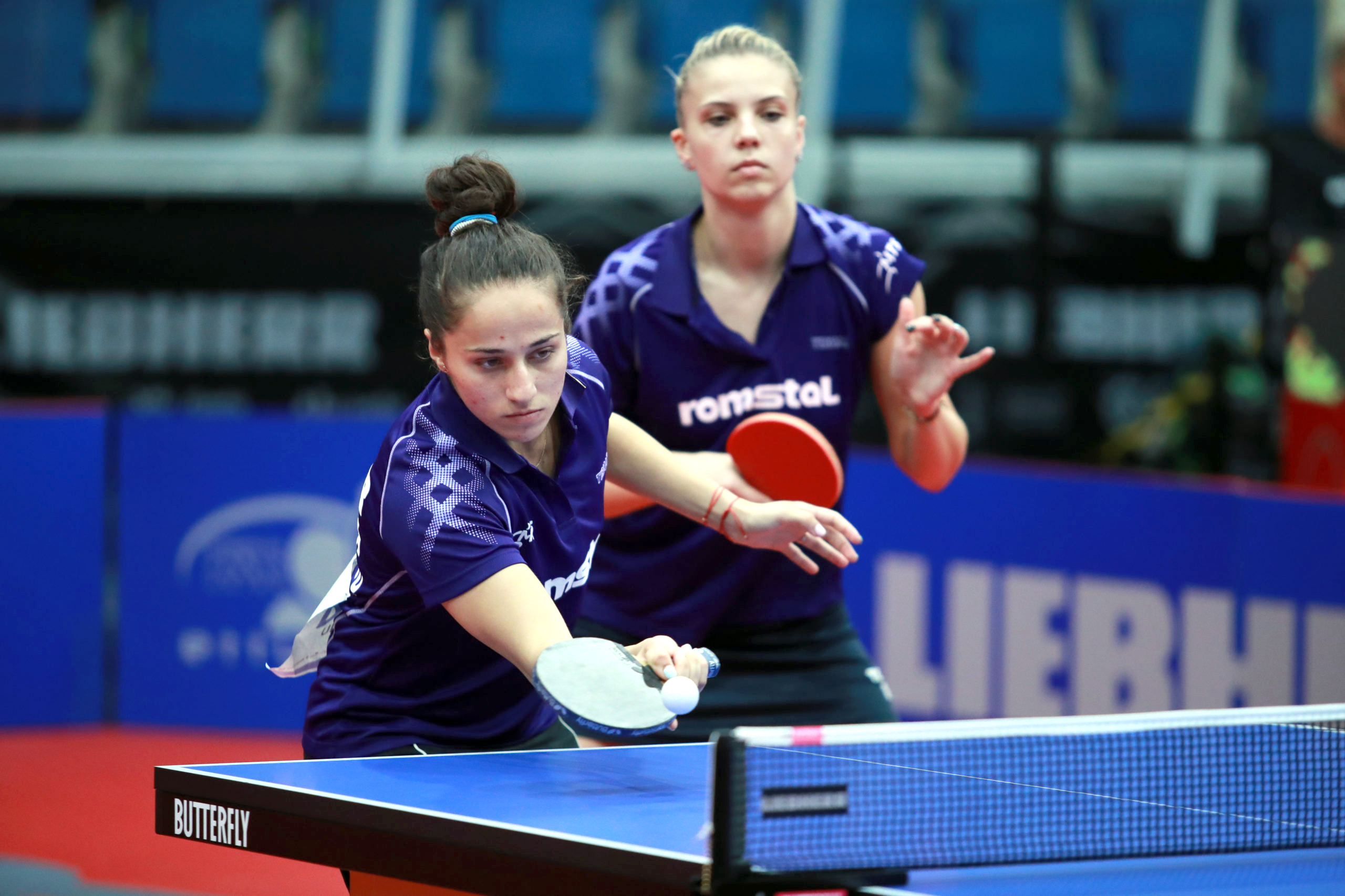 La dublu feminin, pe primul loc al podiumului au urcat Alina Zaharia şi Andreea Dragoman, victorioase în finala cu turcoaicele Simay Kulakceken/Sibel Altinkaya cu 3-2 iar Irina Ciobanu şi Adina Diaconu au obţinut medalia de bronz , după ce au cedat în semifinale cu 2-3 în faţa turcoaicelor Kulakceken/ Altinkaya.