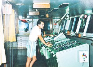 Nu s-a dat bătut, şi după mai multe cereri şi plângeri la conducerea Flotei Maritime şi la Ministerul Transportului, după un an şi jumătate de la absolvirea facultăţii, a reuşit să se îmbarce pe un vas care pleca în larg, în lume. Aşa se face că Revoluţia din 1989 l-a prins în Egipt, în Alexandria, fiind îmbarcat pe cargoul Simeria, un vas comercial de 7.800 de tone. După câteva zile de incertitudine, când lucrurile nu erau limpezi în ţară, la intervenţia noului guvern instalat, cargoul românesc a putut pleca spre ţară.