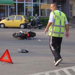 O fetiţă de nouă ani a fost lovită de un moped în timp ce încerca să traverseze o stradă din municipiul Petroşani. Potrivit poliţiştilor, copila se grăbise să treacă prin loc nemarcat şi fără să se asigure, prin spatele unei maşini care staţiona. De altfel, şi şoferul mopedului a suferit câteva răni uşoare, după ce, în urma impactului, s-a dezechilibrat şi a căzut pe carosabil. (C. Ghenea)