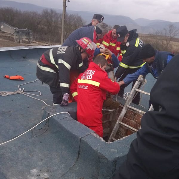 „Cei care au dat alarma au fost colegii bărbatului, care a căzut de pe o scară, de la o înălţime de aproximativ cinci metri, în rezervorul gol. Muncitorul executa lucrări de igienizare a rezervorului. Echipele de intervenţie au coborât în rezervor, au asigurat pacientul, care acuza dureri de spate, cu guler cervical şi echipamente de susţinere a coloanei şi l-au adus la suprafaţă cu ajutorul unei tărgi lopată. Pacientul, conştient şi cooperant, a fost transportat la UPU Deva cu ambulanţa SMURD”, a transmis maiorul Anemona Doda, purtătorul de cuvânt al ISU Hunedoara.
