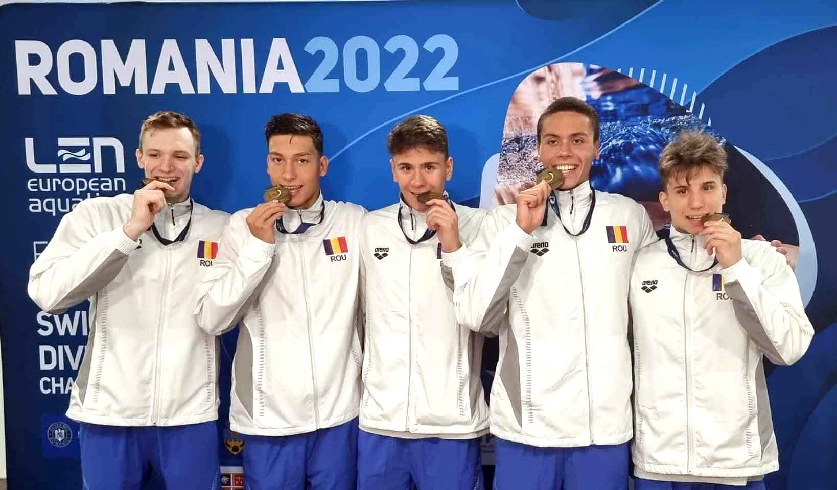 Ștafeta masculină de 4×100 m liber a României a cucerit medalia de aur la ediția din acest an a Campionatelor Europene de juniori care se desfășoară în bazinul recent inaugurat la Otopeni, la capătul unei curse de infarct.