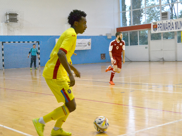 Într-o sală arhiplină care a făcut o atmosferă incendiară, România a început prudent jocul. Chiar dacă i-a ţinut pe georgieni în propria jumătate, elevilor lui Robert Lupu le-au lipsit ocaziile clare. Doar un şut expediat în primul minut de Florin Matei, scos de pe linia porţii de portarul oaspeţilor, a creat ceva emoţii. În minutul 10 sala a amuţit. Roninho a avut o acţiune pe partea stângă, a centrat în faţa porţii şi Kurtanidze a pus capul, înscriind primul gol al meciului. Felipe a avut o şansă mare de a egala, reluând din vole puţin pe lângă bară, după un corner, iar apoi oaspeţii au lovit din nou. În urma unui contraatac, mingea a ajuns la Kakabadze şi acesta l-a învins pe Iancu cu un şut din unghi, după ce portarul tricolor îi respinsese prima execuţie. Tricolorii au continuat atacurile, însă nu au avut soluţii, acelaşi Florin Matei încercând să înscrie cu un şut de la distanţă dar Buka a respins din nou.