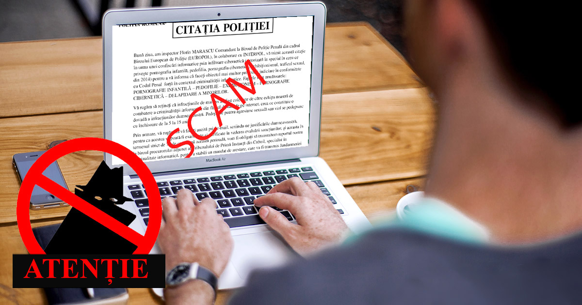 „Astfel, capacitatea de analiză şi de a lua decizii corecte a potenţialei victime este din start afectată. Mai departe, după stabilirea emoţiei, atacatorii speră să primească detalii compromiţătoare sau chiar date sensibile, printr-un răspuns (reply) la e-mail-ul iniţial, care nu este una specifică unei autorităţi. Recomandăm vigilenţă cu privire la primirea unor astfel de mesaje nesolicitate, o analiză în context a mesajului primit şi verificarea adresei reale de mail a expeditorului! De multe ori, atacatorii se folosesc de alias-uri pentru a ascunde adresa reală”, a mai transmis instituţia. Recomandările specialiștilor: Evitaţi accesarea link-urilor sau ataşamentelor din mesaje suspicioase şi trimiteţi în zona de SPAM astfel de adrese de mail care transmit mesaje-capcană. Dacă aţi căzut în capcană şi aţi intrat în conversaţie cu atacatorii, cărora le-aţi furnizat ulterior date personale, date de autentificare şi mai ales detalii financiare, contactaţi imediat banca pentru a bloca acel card şi eventuale tranzacţii ilicite din cont, Poliţia pentru a deschide o investigaţie şi DNSC, pentru a informa mai departe şi alţi utilizatori despre tipul acesta de atac. Antrenaţi-vă pentru a detecta şi evita principalele ameninţări din online pe sigurantaonline.ro. #SigurantaOnline este un proiect naţional de conştientizare lansat de DNSC, Poliţia Română şi Asociaţia Română a Băncilor (ARB), alături de parteneri importanţi din domeniul privat IT&C. (S.S.)