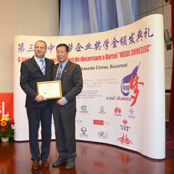 „A fost a treia ediţie a ceremoniei de decernare a Bursei «Visul chinezesc», desfăşurată în prezenţa unui numeros public format din reprezentanţi ai comunităţii oamenilor de afaceri din China, reprezentanţi ai Ambasadei Republicii Populare Chineze în România, profesori, elevi. Diploma primită este un semn al aprecierii întregii noastre activităţi, a recunoaşterii implicării Bibliotecii Judeţene «Ovid Densusianu» Hunedoara-Deva în colaborarea româno-chineză, veche de peste 65 de ani şi pe care o dorim tot mai puternică. Primirea diplomei constituie un moment aparte pentru toţi colaboratorii Bibliotecii, pentru că ne onorează pe noi, cei care, de doi ani încoace, desfăşurăm o fructuoasă activitate pentru promovarea şi cunoaşterea limbii şi culturii chineze, a civilizaţiei multimilenare a acestei fascinante ţări. Este o recunoaştere şi o apreciere a tot ceea ce am organizat – în colaborare cu Institutul «Confucius» din Sibiu – pentru a atrage un număr cât mai mare de persoane la cursurile de limbă chineză, pentru ca filiala cu cărţi în limba chineză – Colţul chinezesc – să fie frecventată sistematic, pentru a promova valorile spirituale specifice Chinei. Suntem extrem de bucuroşi că această activitate a noastră a dat roade tot mai bogate de la un an la altul şi, cu siguranţă, vom găsi noi modalităţi de promovare, la Deva, a impresionantului tezaur de cultură de care dispune China. De asemenea, suntem recunoscători colaboratorilor noştri chinezi, Institutului «Confucius» din Sibiu, Ambasadei Republicii Populare Chineze la Bucureşti, pentru tot sprijinul pe care l-am primit în buna desfăşurare a acestui proiect cultural”, a declarat Sebastian Bara, managerul Bibliotecii Judeţene „Ovid Densusianu” Hunedoara-Deva.