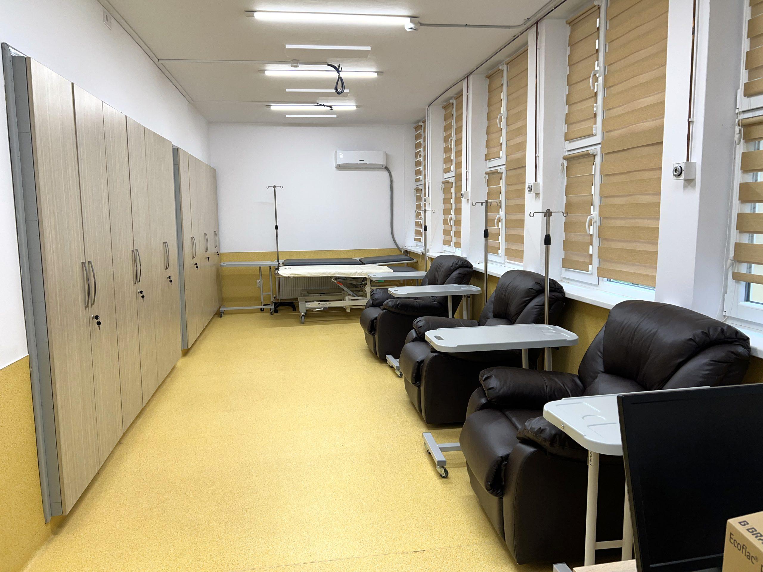 Cele mai recente dotări ale secției Oncologie de la Hunedoara înseamnă 20 de scaune tip fotolii, distribuite in 4 încăperi, pentru pacienții spitalizați sub formă de internare de zi, care urmează tratamente cu chimioterapie, imunoterapie sau altele din spectrul oncologic. Însă dincolo de orice investiție materială, icoana care se roagă în foarte multe încăperi este ceea ce te determină să spui stop oricărui gând pesimist. Intrarea este precum recepția unui hotel, iar modernizările nu se vor opri aici. De la un viitor colț de lectură, cu cărți și reviste, nou tapet care să înveselească pereții și multe alte bucurii pentru ochi și minte, toate sunt pe lista scurtă de priorități a doctoriței Florea, cea care nu doar că este un profesionist cu suflet nobil, ci și o bună coordonatoare. „Reabilitarea a început în ianuarie 2023, fiind creată a doua parte a secției, mai exact spații noi, adică 4 saloane pentru spitalizarea de zi, birouri, arhivă, magazie și recepție. Dacă secția avea 25 de paturi de