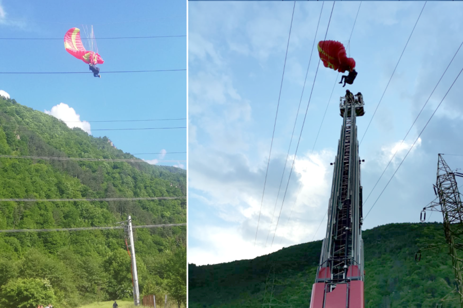 Bărbatul a rămas suspendat la circa 20 de metri de sol, după ce parapanta i s-a agăţat în liniile de înaltă tensiune din zona Brazi- Râu de Mori.